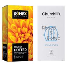 کاندوم چرچیلز مدل Round Seven بسته 12 عددی به همراه کاندوم بونکس مدل More Dotted بسته 12 عددی