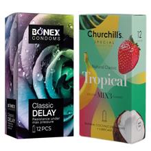 کاندوم چرچیلز مدل Tropical بسته 12 عددی به همراه کاندوم بونکس مدل Classic Delay بسته 12 عددی