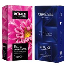 کاندوم چرچیلز مدل Cool Ice بسته 12 عددی به همراه کاندوم بونکس مدل Extra Lubricated بسته 12 عددی