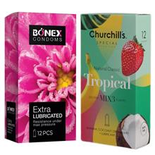 کاندوم چرچیلز مدل Tropical بسته 12 عددی به همراه کاندوم بونکس مدل Extra Lubricated بسته 12 عددی