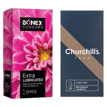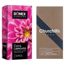 کاندوم چرچیلز مدل Ultra Thin Double Delay بسته 12 عددی به همراه کاندوم بونکس مدل Extra Lubricated بسته 12 عددی